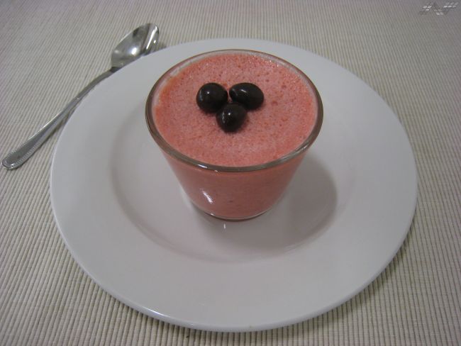 • En vaso poner 4-5 cucharadas del puré de fresas y calentarlo 10-15 segundos en el microondas.