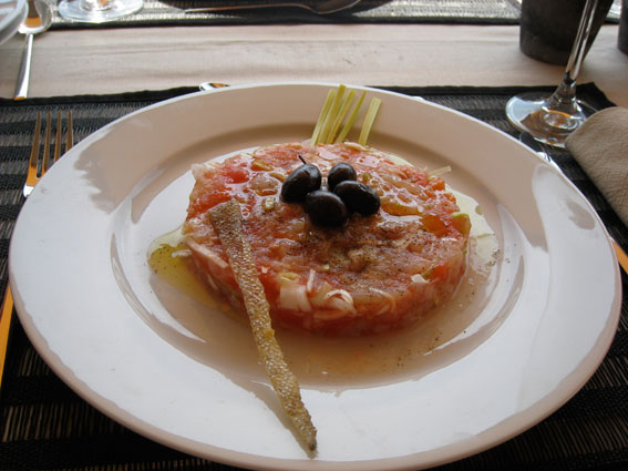 - En un bol mediano juntar y mezclar el bacalao, los tomates, la cebolla y el ajo.