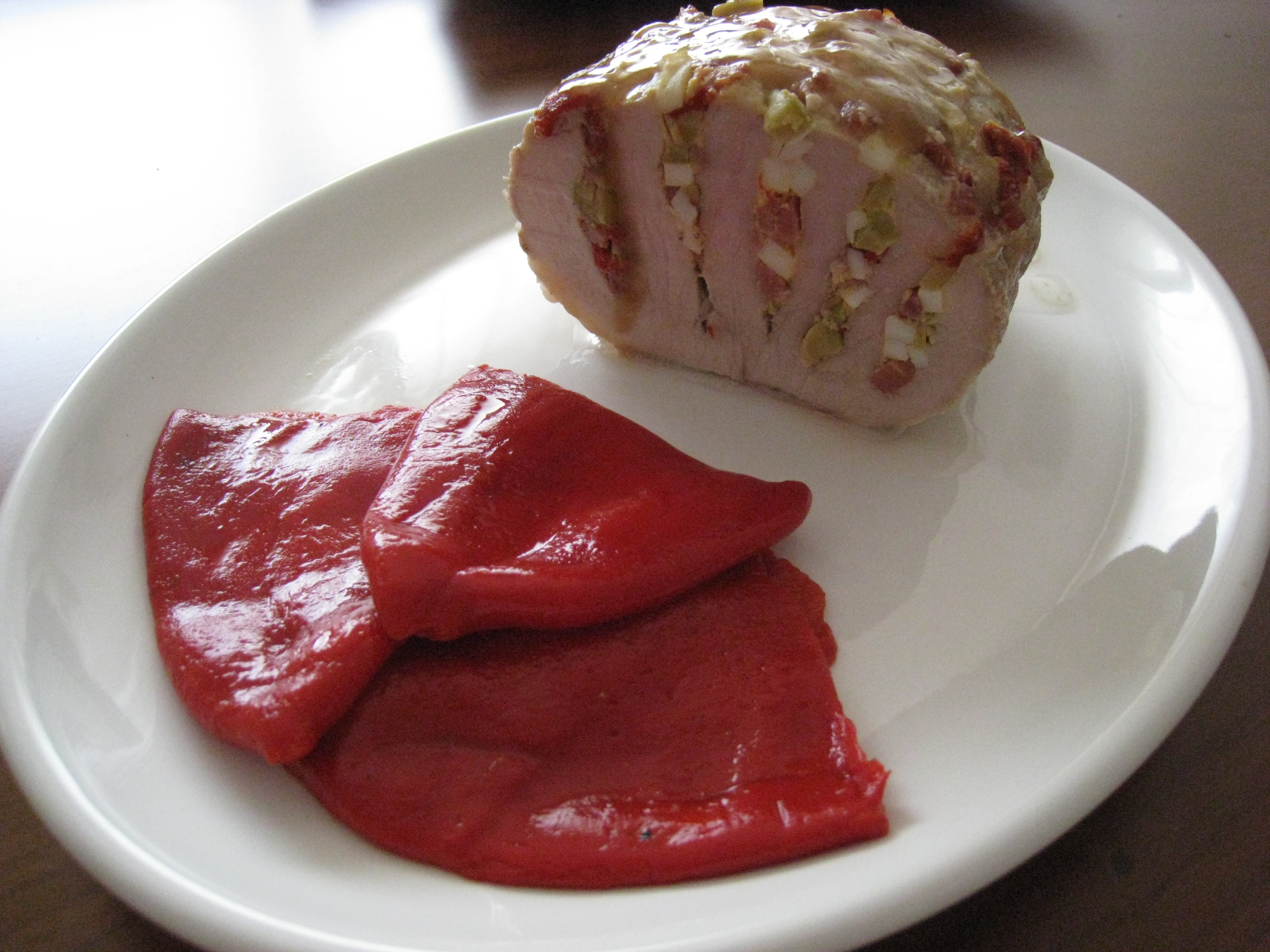 - Quitar el cordel, cortar el lomo y servir con la salsa y el resto de pimientos.