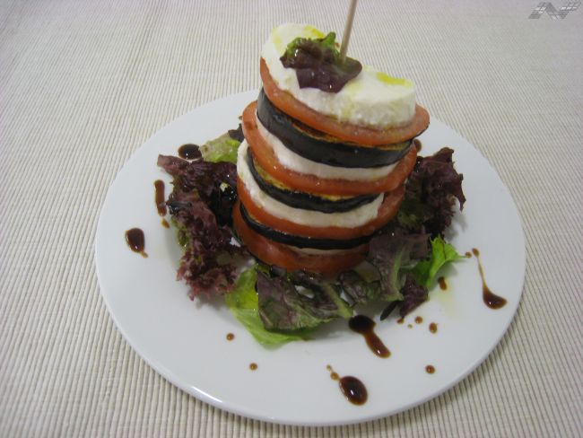 MILHOJAS DE BERENJENA, TOMATE Y MOZZARELA